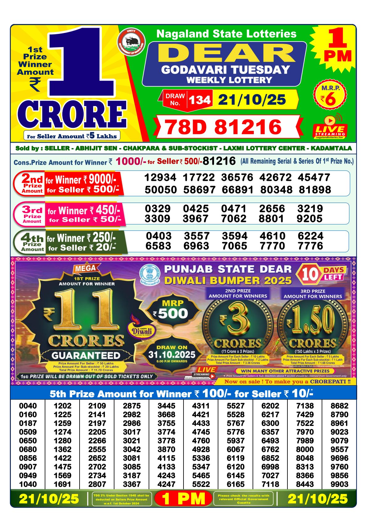 Dhankesari Lottery Sambad Result of Dear Morning 1:00 PM Live on Lottery Sambad.